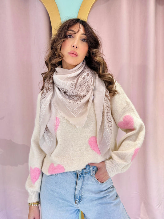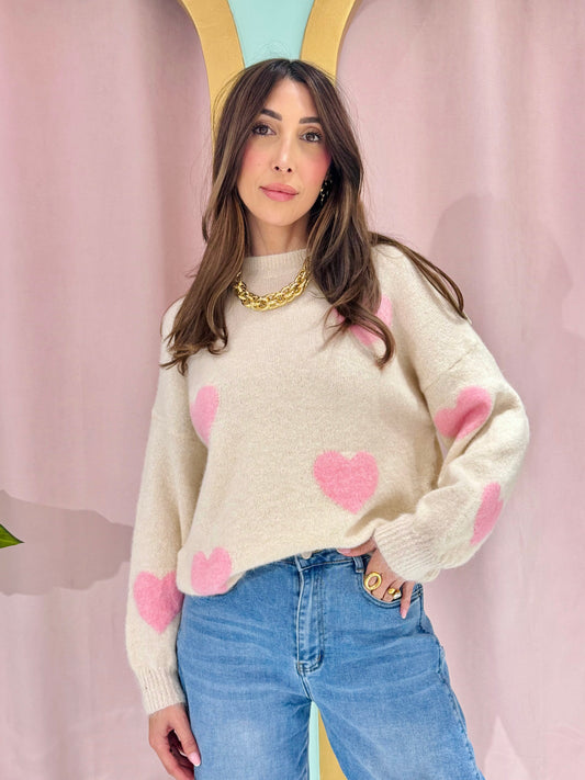 Pull doux à cœurs – beige