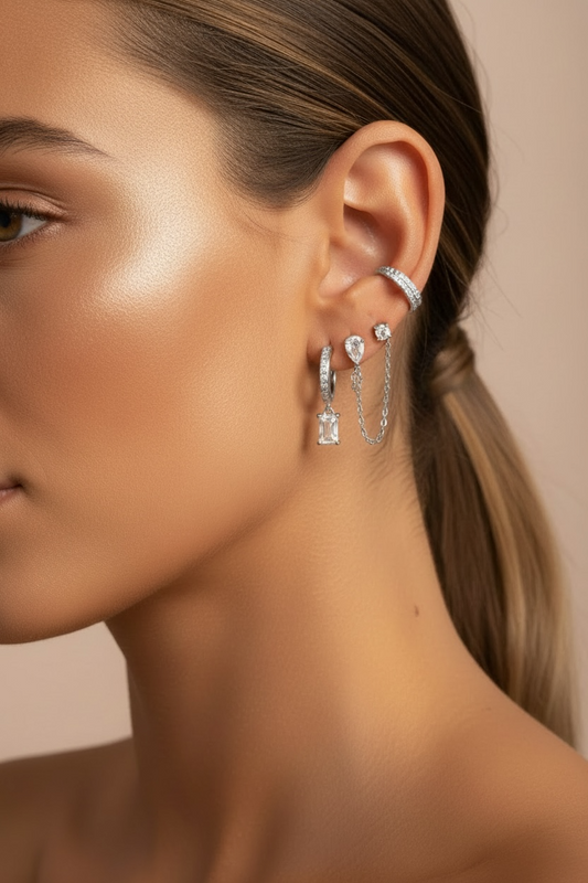 Boucle d’oreille petit anneau et carré strass gamme spacy