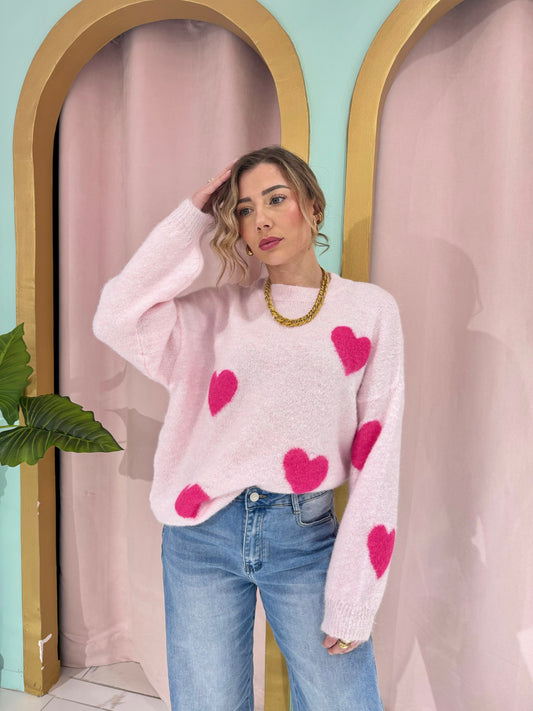ÉpuiséPull doux à cœurs – rose