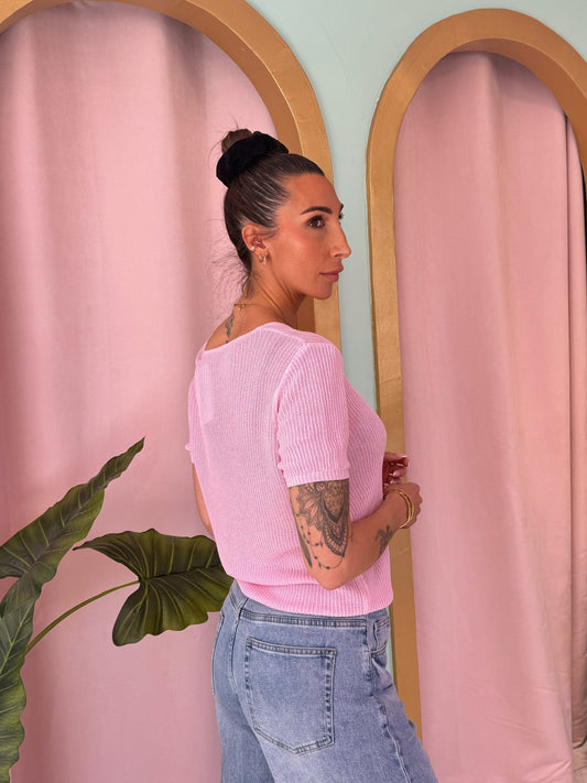 Top maille fine col V – rose