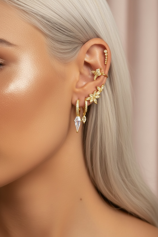 Boucle d’oreille petit anneau et triangle strass gamme spacy
