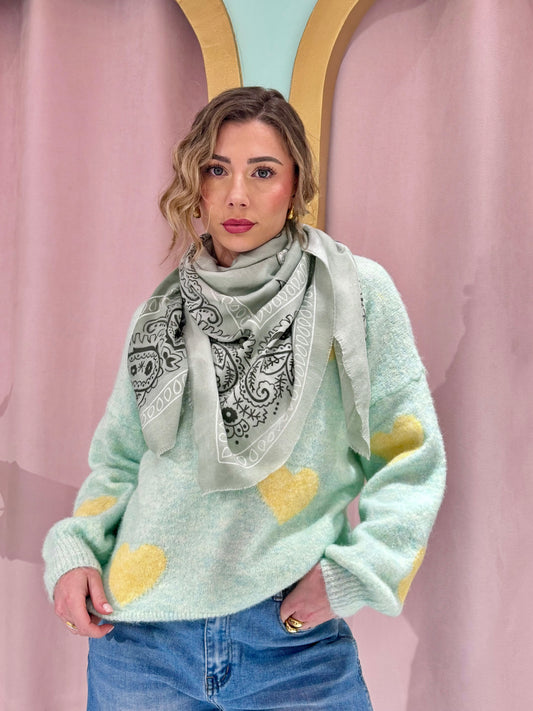 Pull doux à cœurs – menthe à l’eau