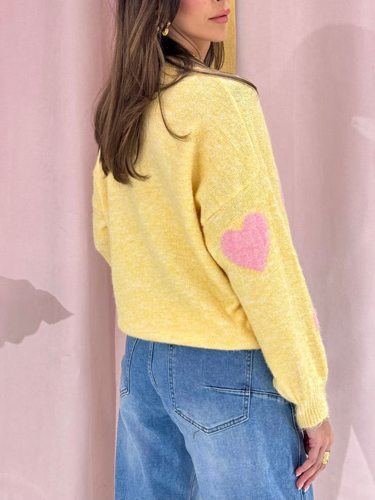 Pull doux à cœurs – jaune