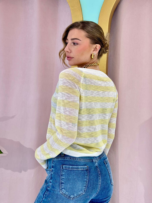 Pull fin à rayures jaune pastel