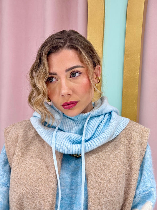 Cagoule capuche en maille bleu ciel