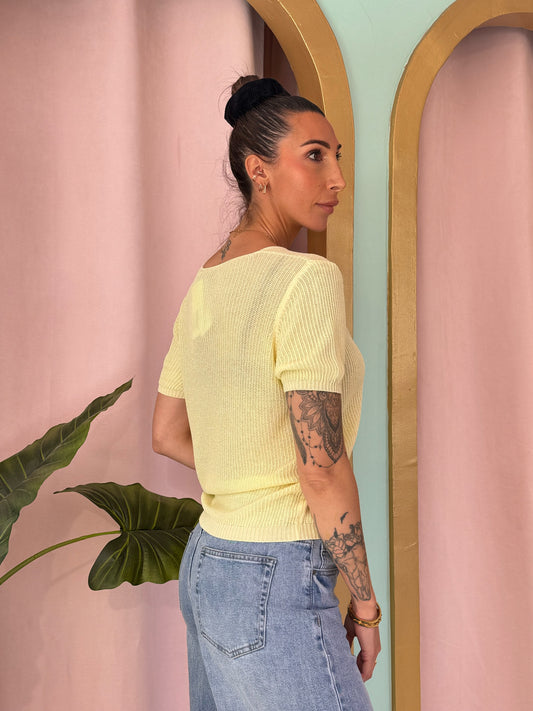 Top maille fine col V – jaune