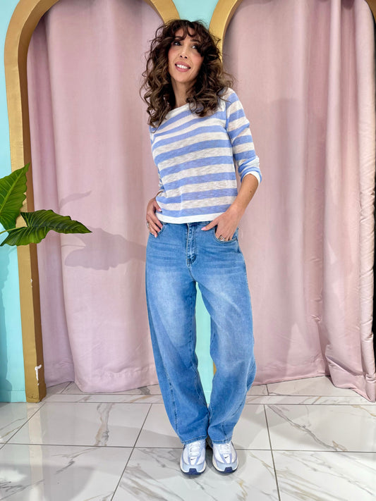 Pull fin à rayures bleu ciel