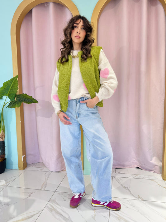 Veste sans manches façon laine bouillie verte