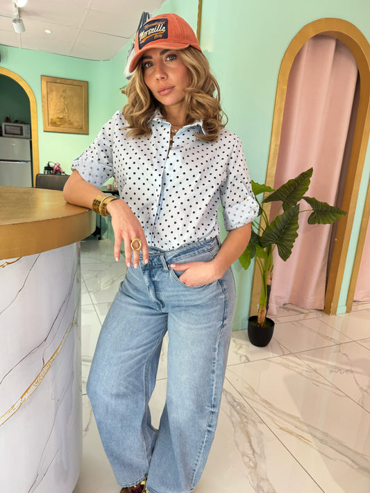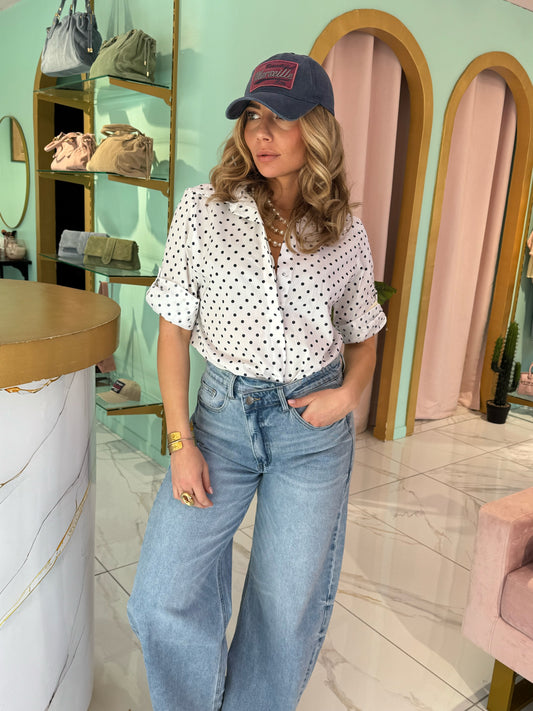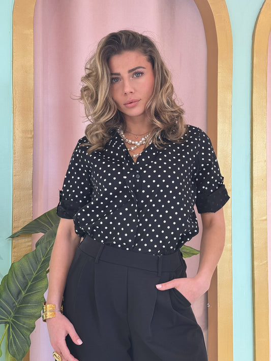 Chemise à pois noire et blanc
