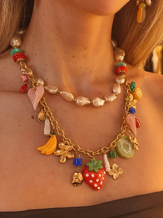 🍌 🥝 🍓Collier double rang fruits &compagnie