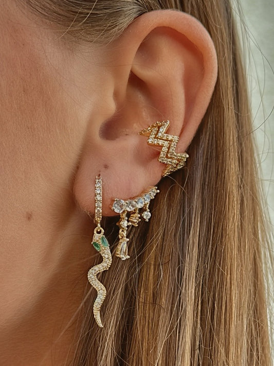 Boucle d’oreille spacy pendentif serpent yeux vert