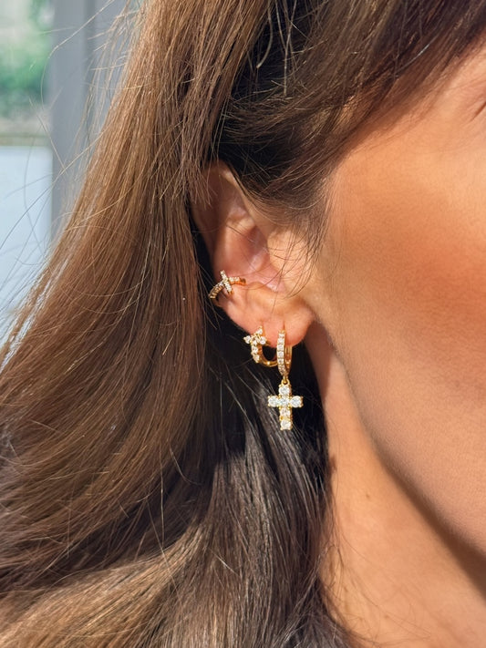 Boucle d’oreille barre strass en cascade ( disponible en coloris or ou argent)