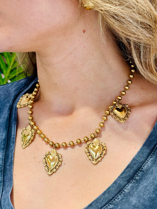Boucles d’oreilles brodées à la main-coeur de protection rose