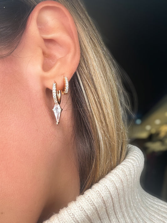 Boucle d’oreille petit anneau et triangle strass gamme spacy ( disponible en doré et argenté )