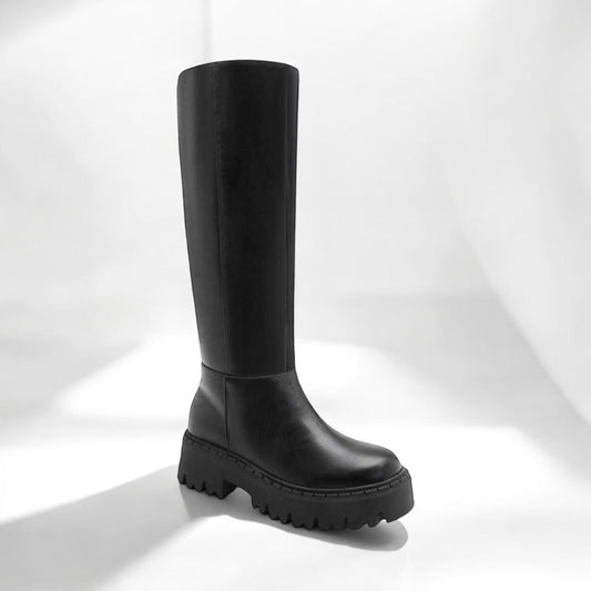 Bottes Hautes Chunky Noires à Semelle Crantée et Zip