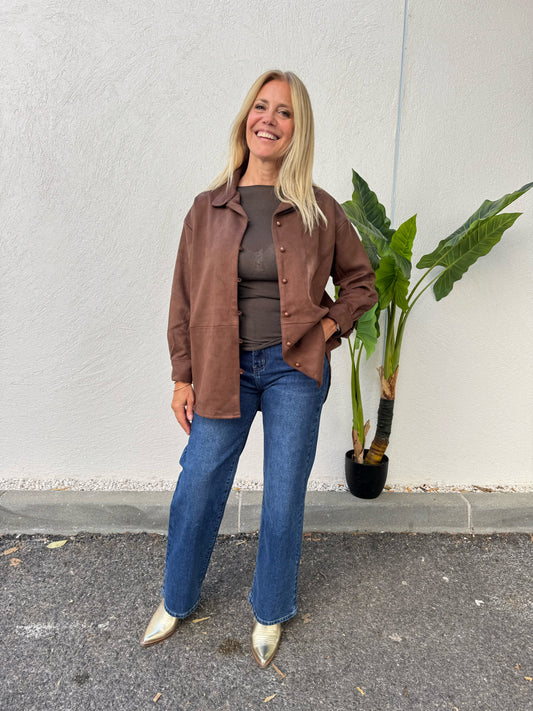 Sac cabas façon nubuck – Grand format avec pochette & bandoulière chocolat