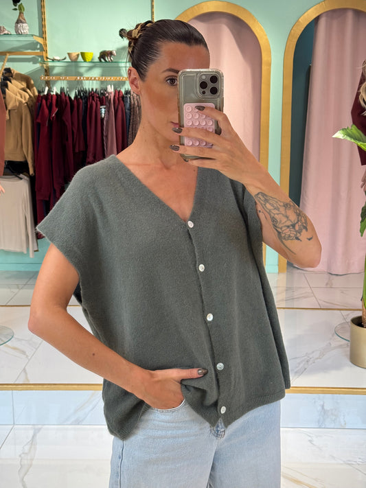 Gilet en maille sans manches – Loose & réversible kaki