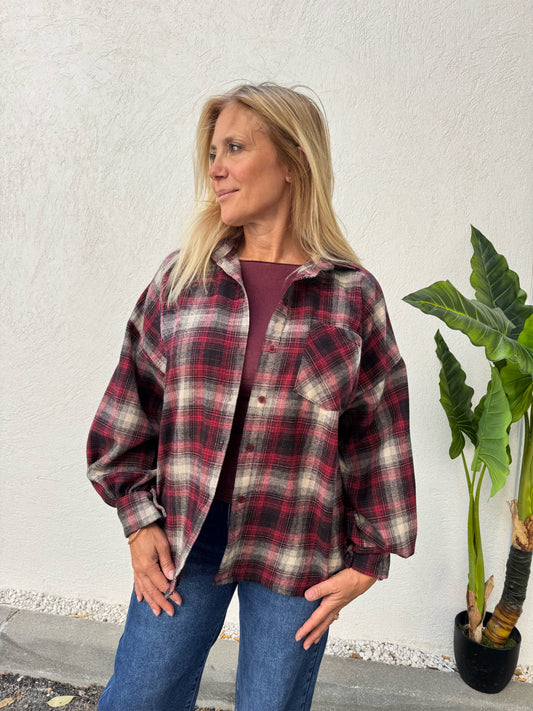 Chemise à carreaux bordeaux