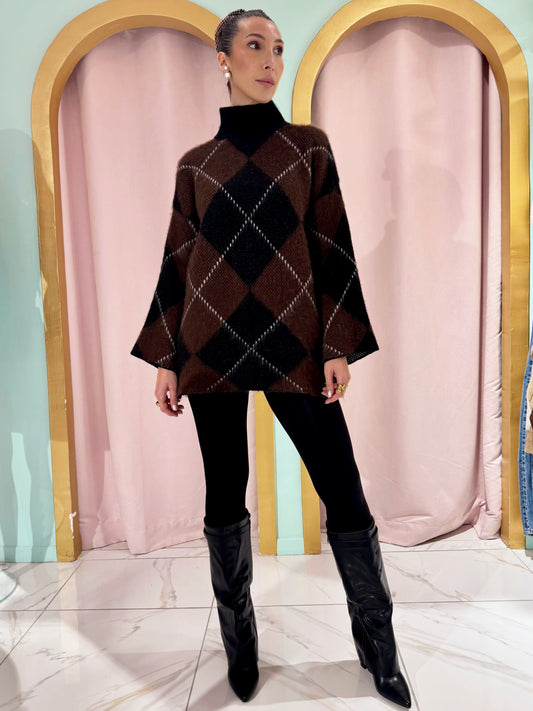 Tunique en maille Jacquard –taupe