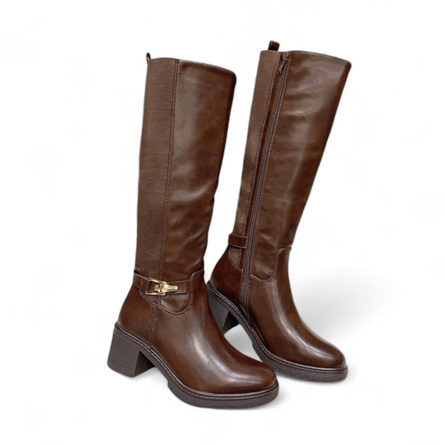 Bottes Marron à Talons avec Boucle Dorée et Zip