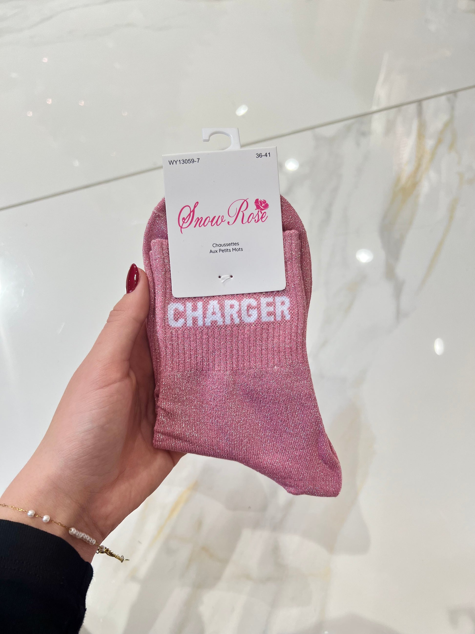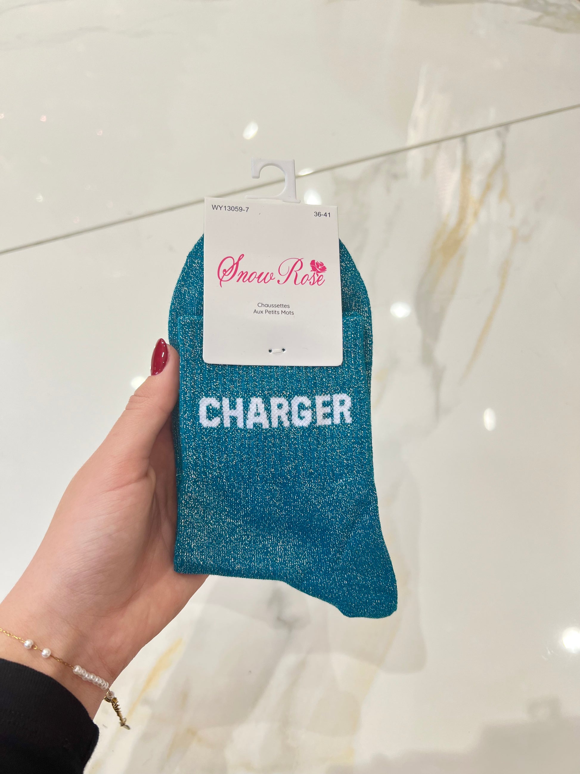 Chaussettes pailletées - message charger
