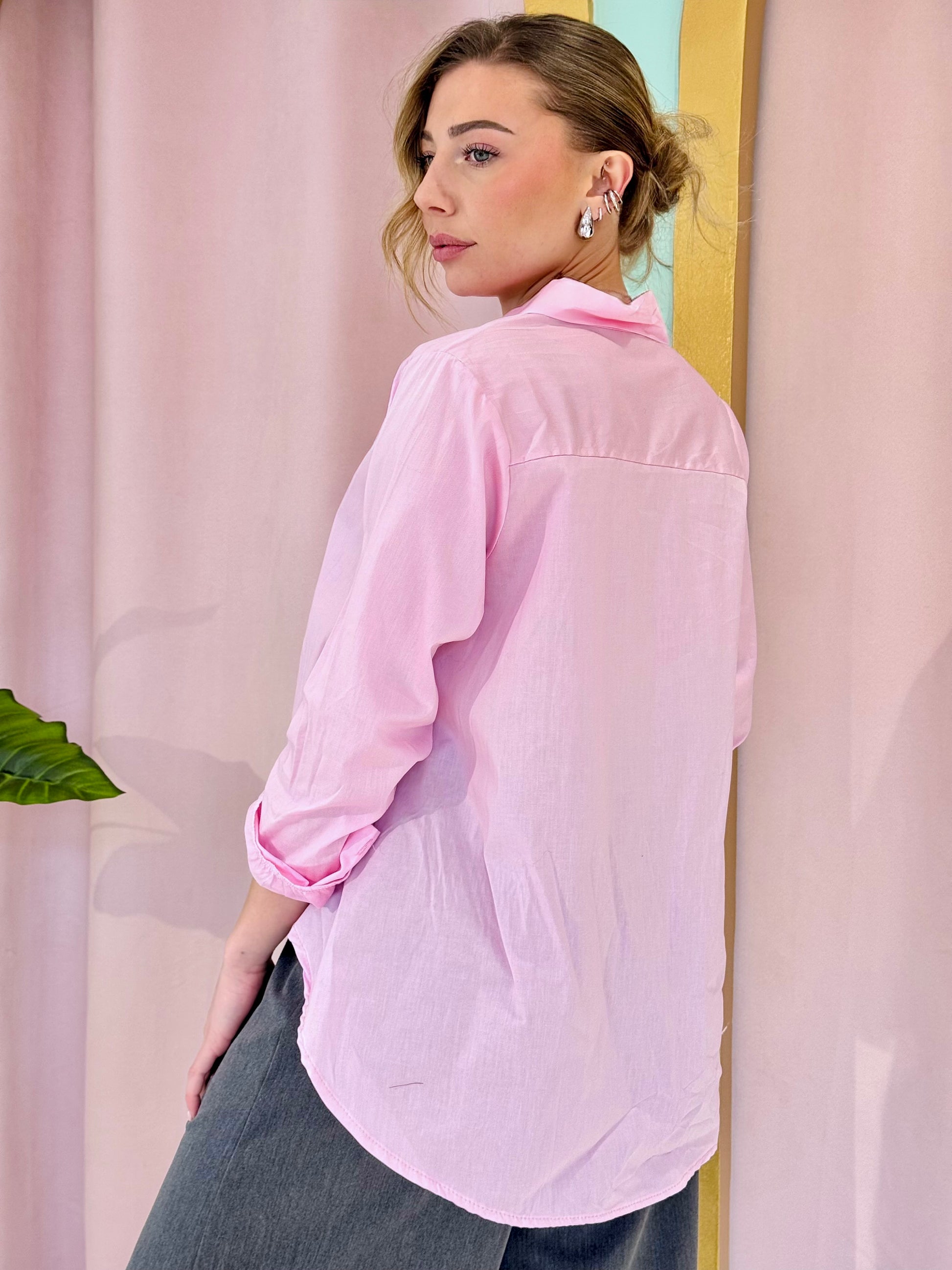 Cette chemise unie est un essentiel revisité avec une touche mode. Sa coupe légèrement oversize et son dos plus long que l’avant apportent du style et un joli tombé, facile à porter au quotidien.