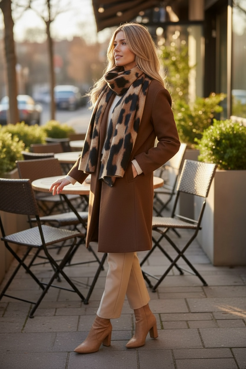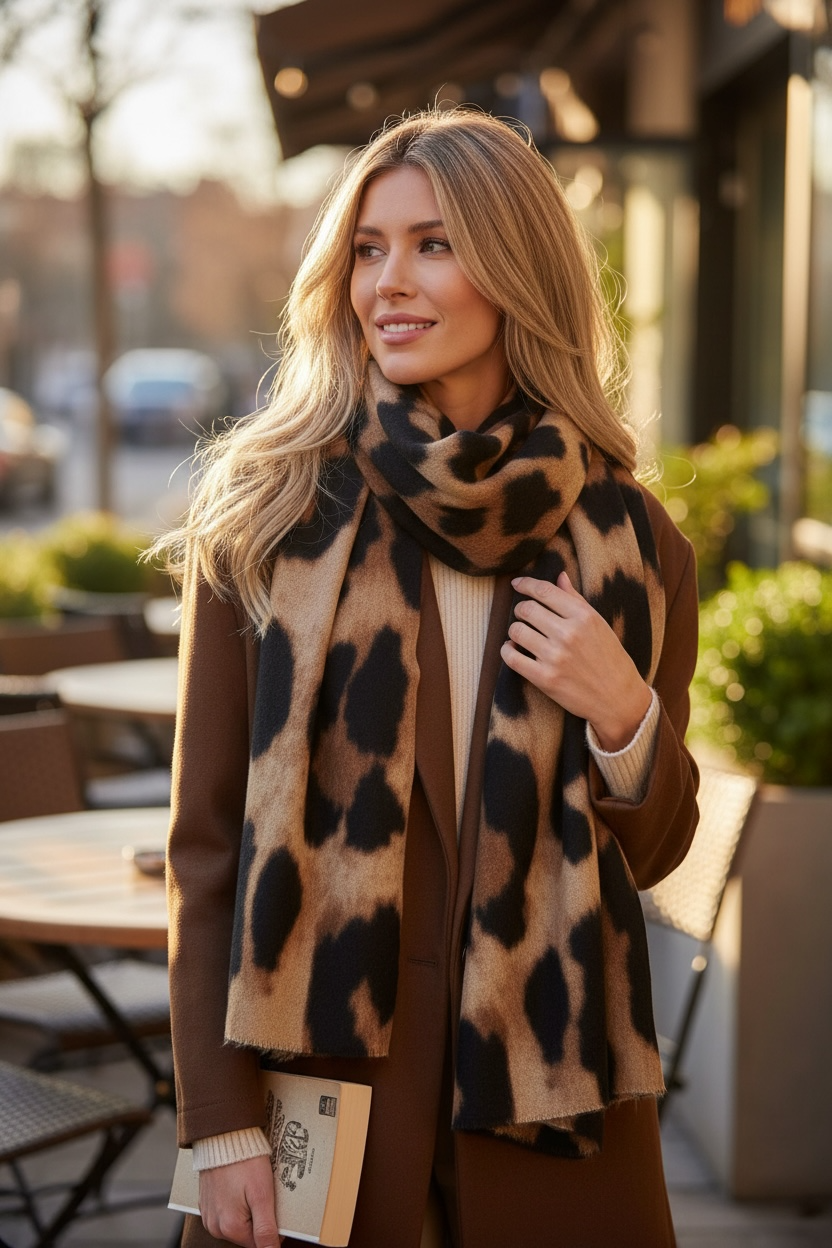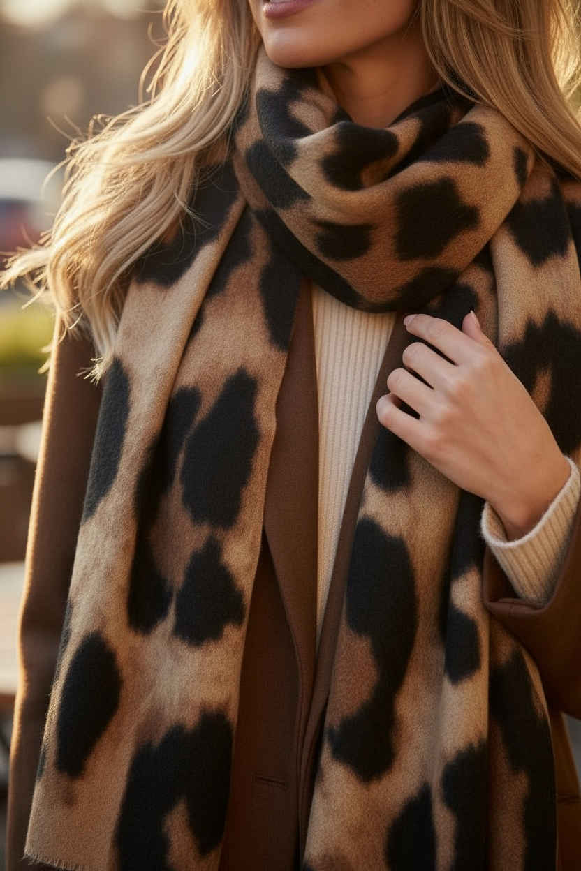 Une écharpe au motif léopard parfaitement dessiné, idéale pour ajouter une touche mode à toutes vos tenues.