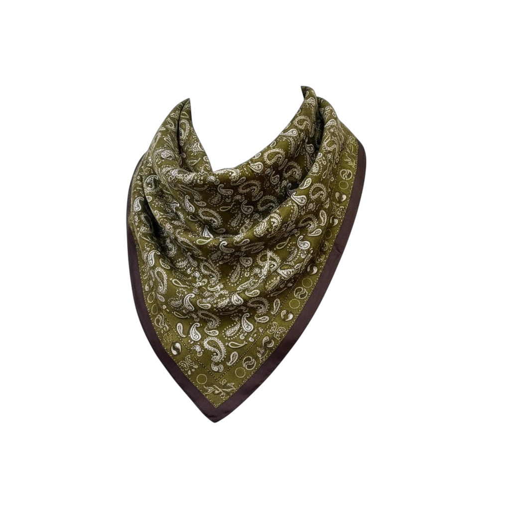 Foulard carré satin kaki & chocolat