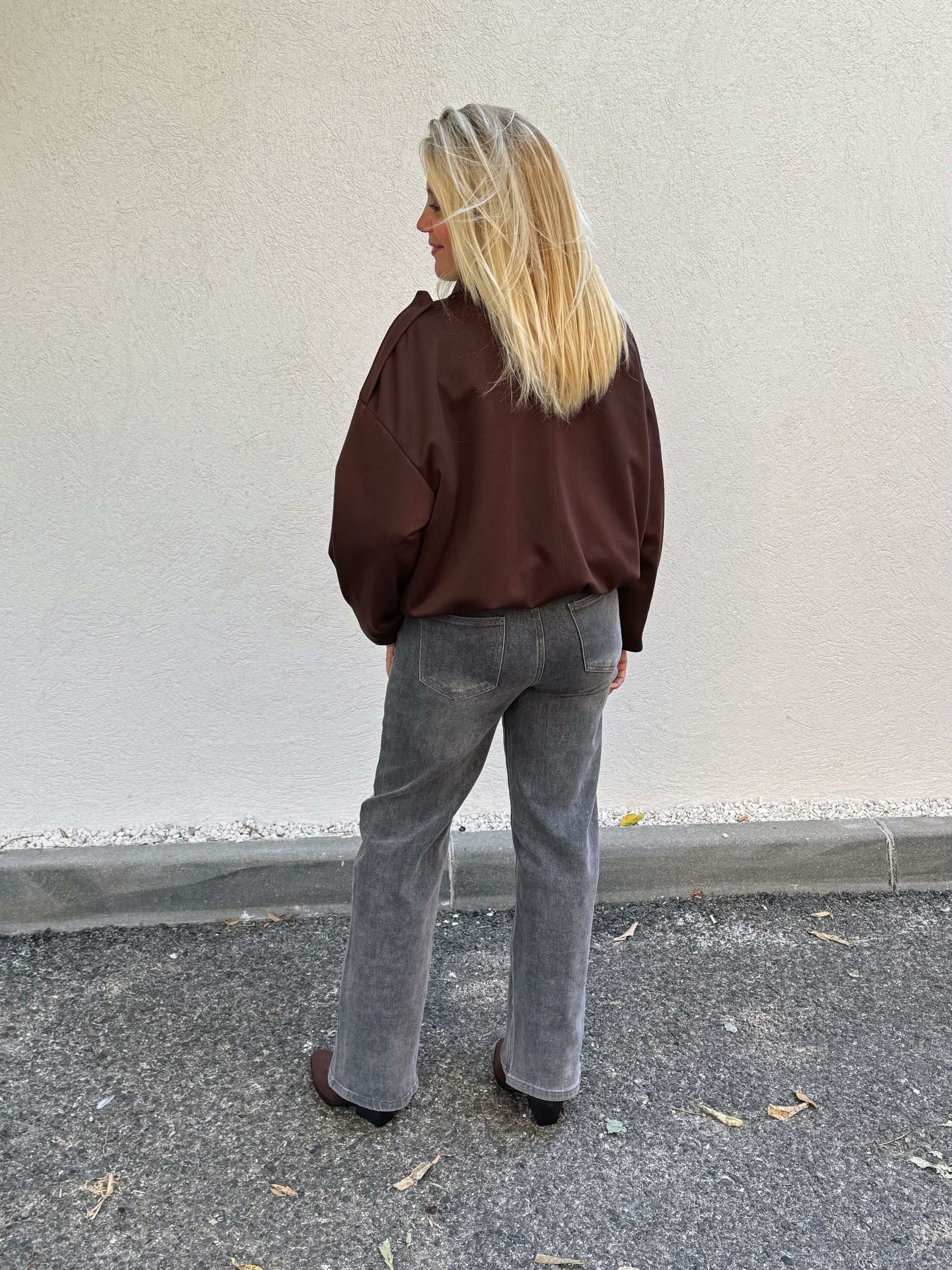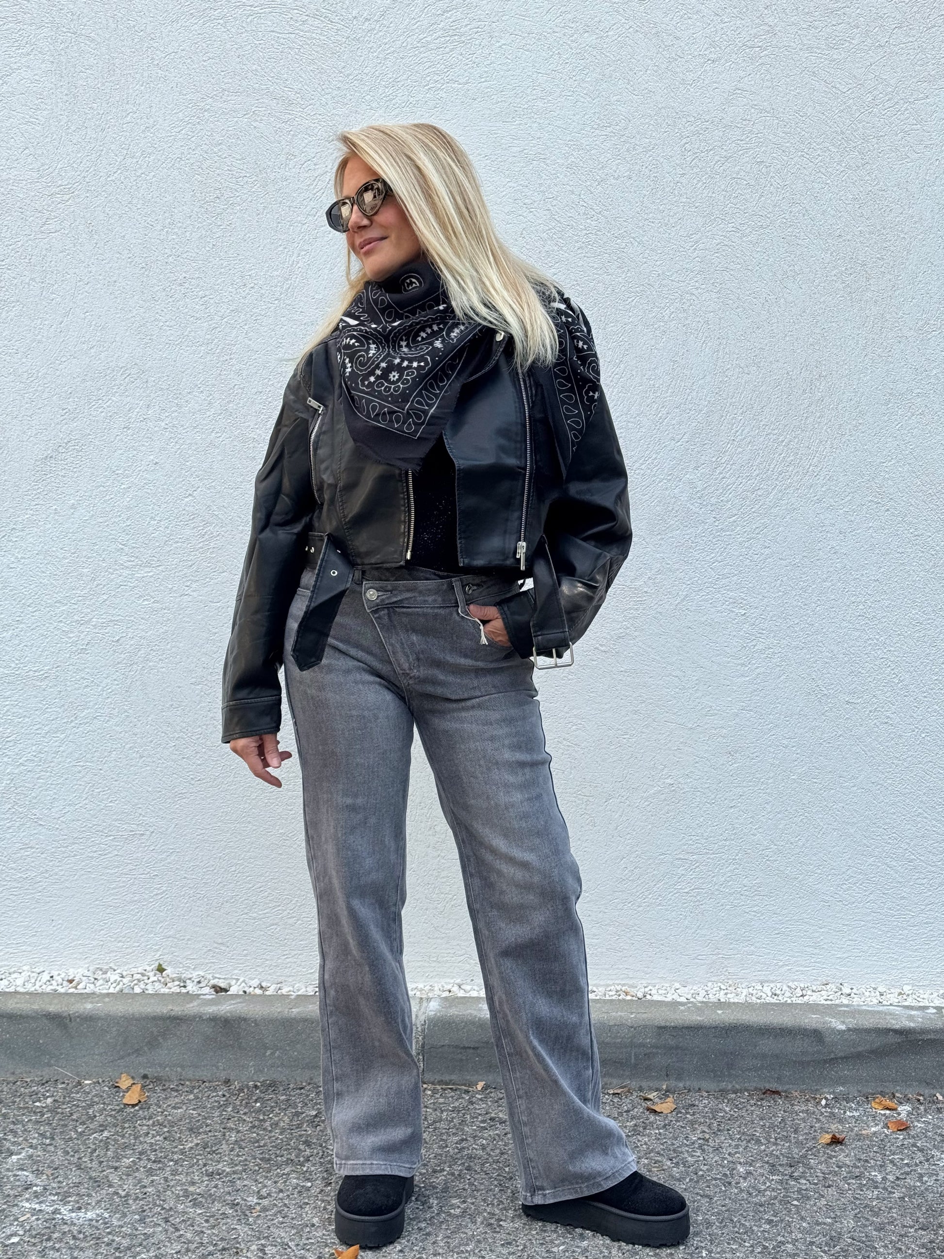 On adore le porter avec un blouson oversize, une maille douce ou une chemise fluide rentrée à l’intérieur pour révéler le détail asymétrique à la taille.