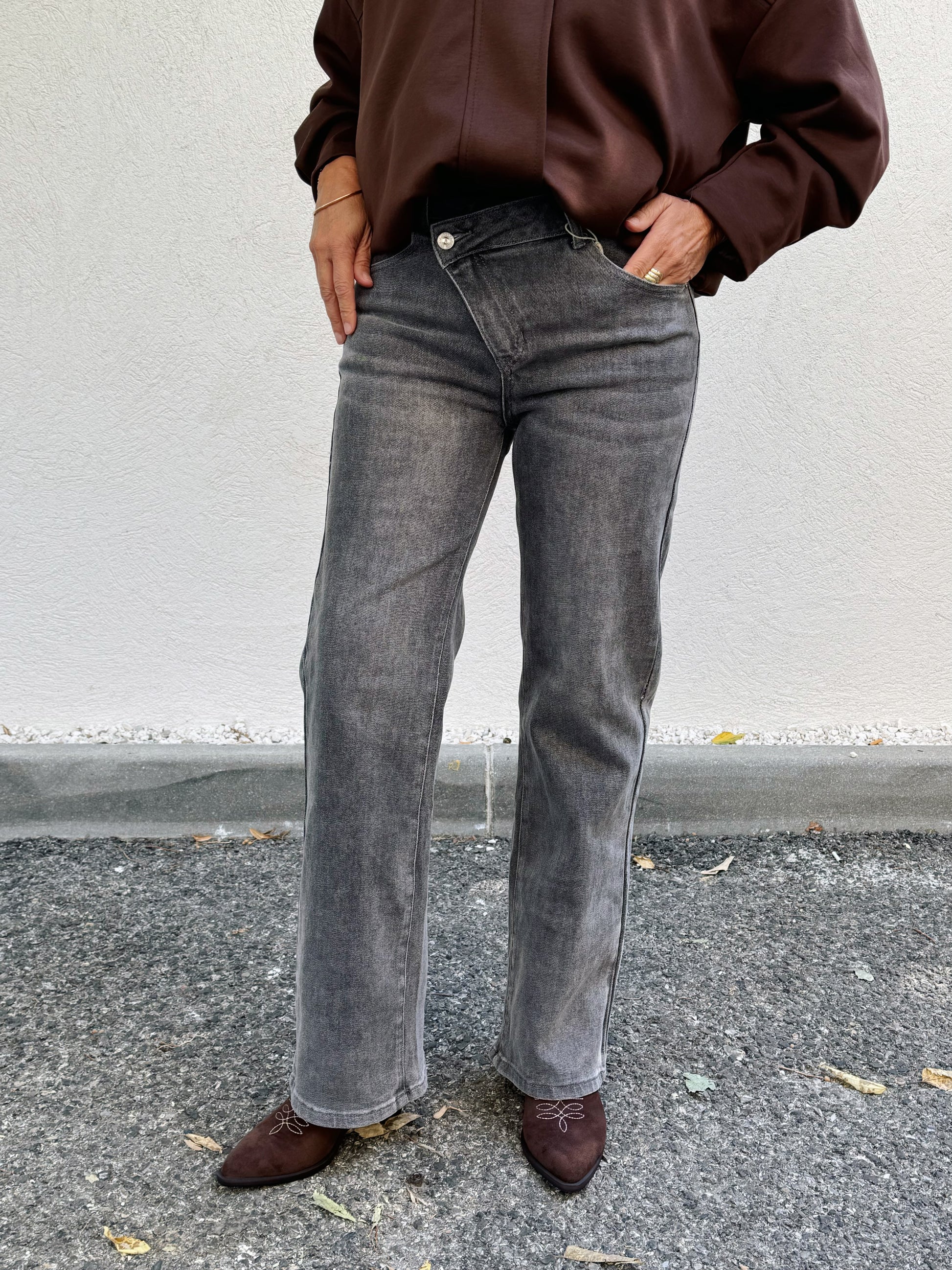 Avec sa fermeture asymétrique ultra stylée, il revisite la coupe droite classique dans une version mode et affirmée.