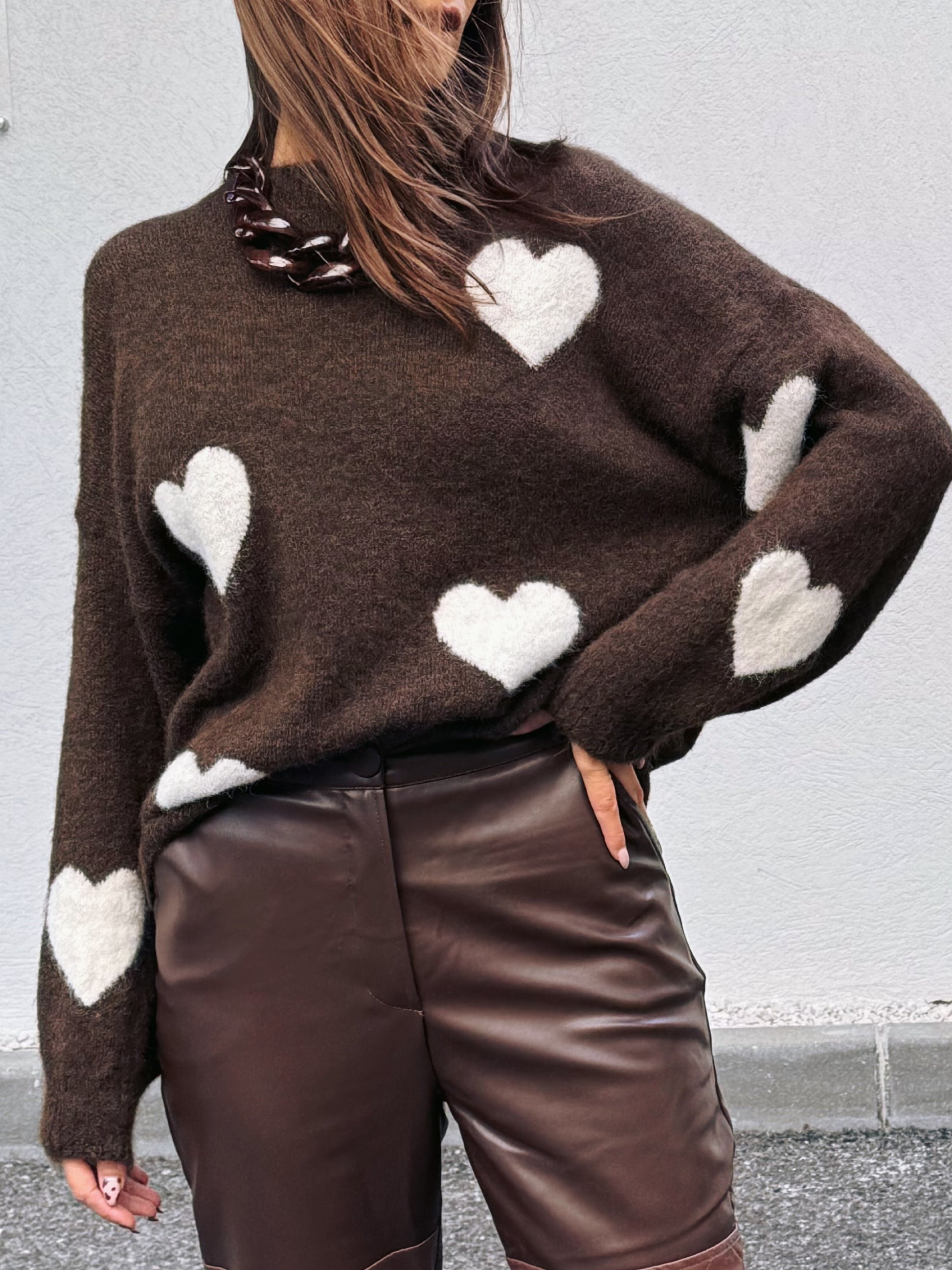 Les cœurs contrastants ajoutent une touche tendre et stylée sans tomber dans le cliché — bref, le pull “good vibes” par excellence.