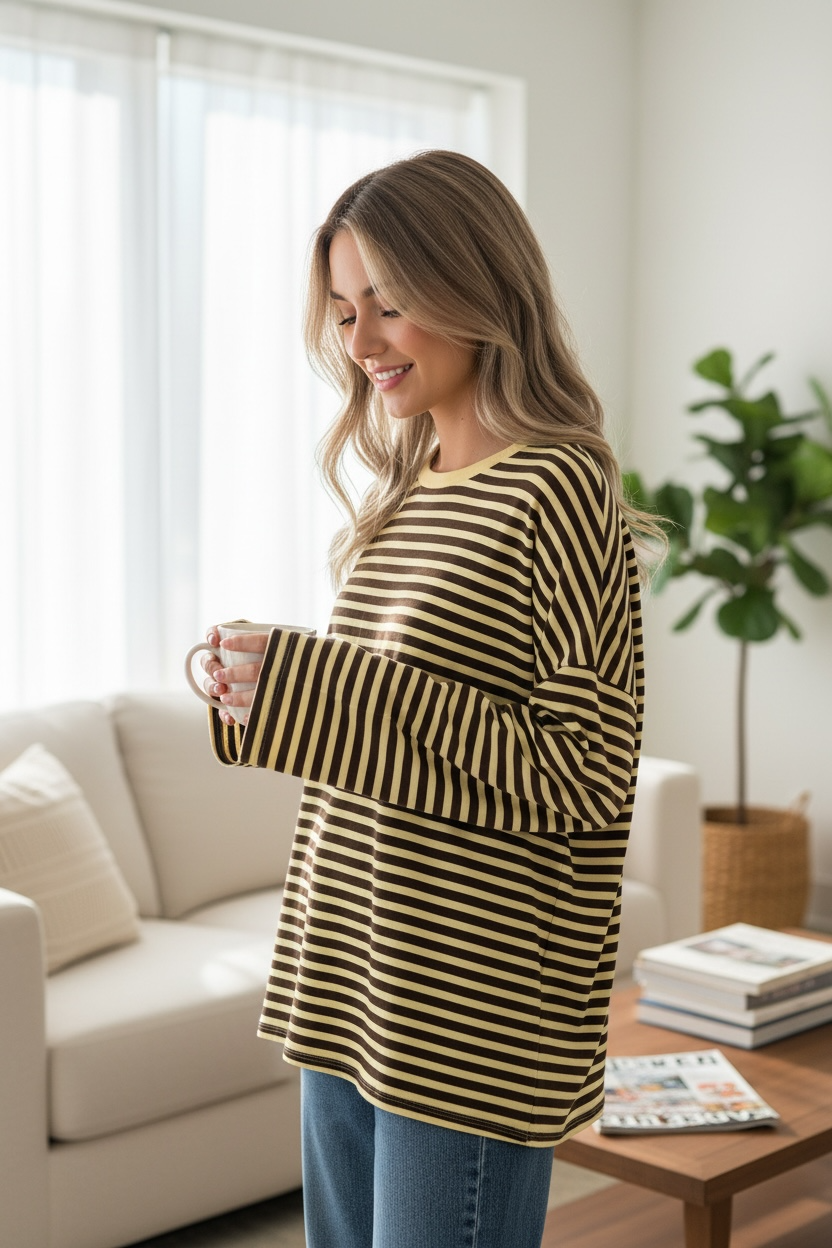 T-shirt manches longues loose à rayures fines – Confort & style effortless