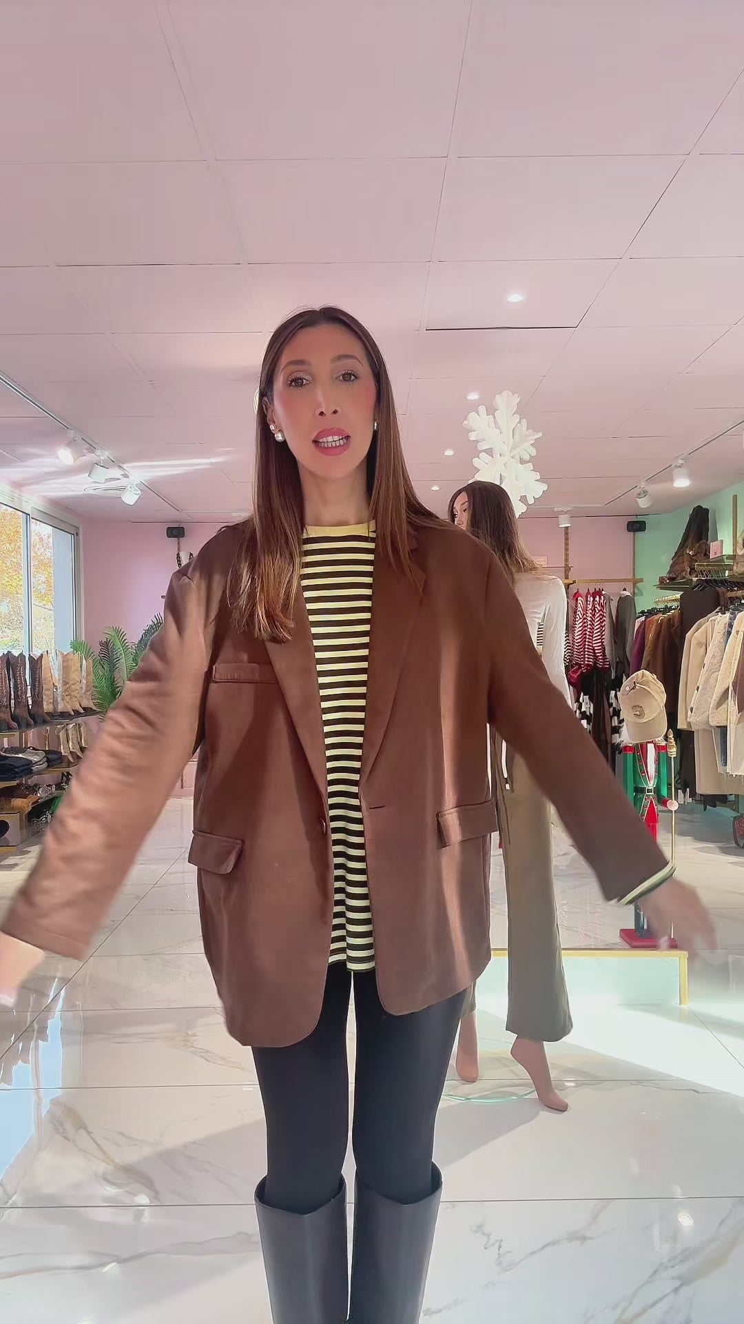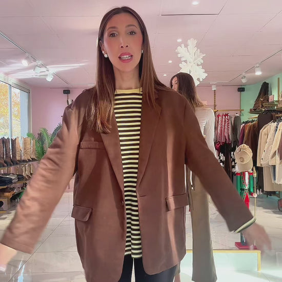 Avec sa coupe extrêmement loose, ses rayures fines et son col rond uni, il apporte ce style effortless qu’on adore : simple, moderne, confortable.