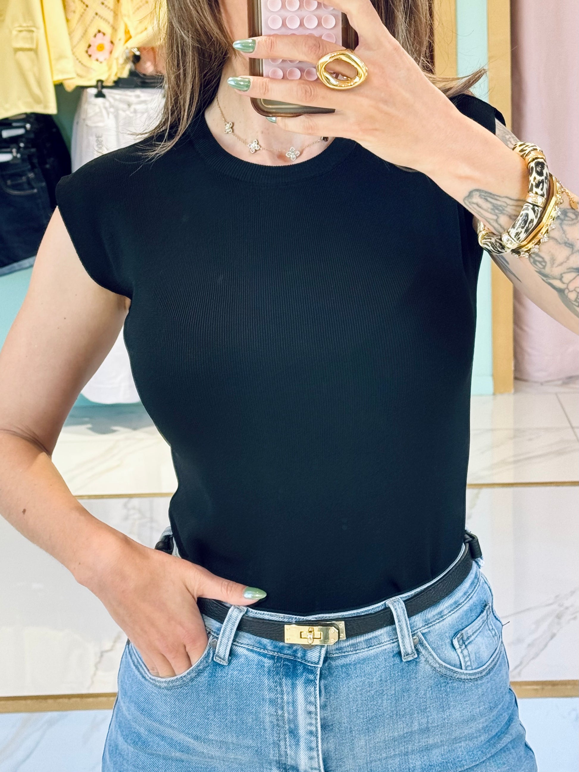 Top en maille fine moulant façon body- noir