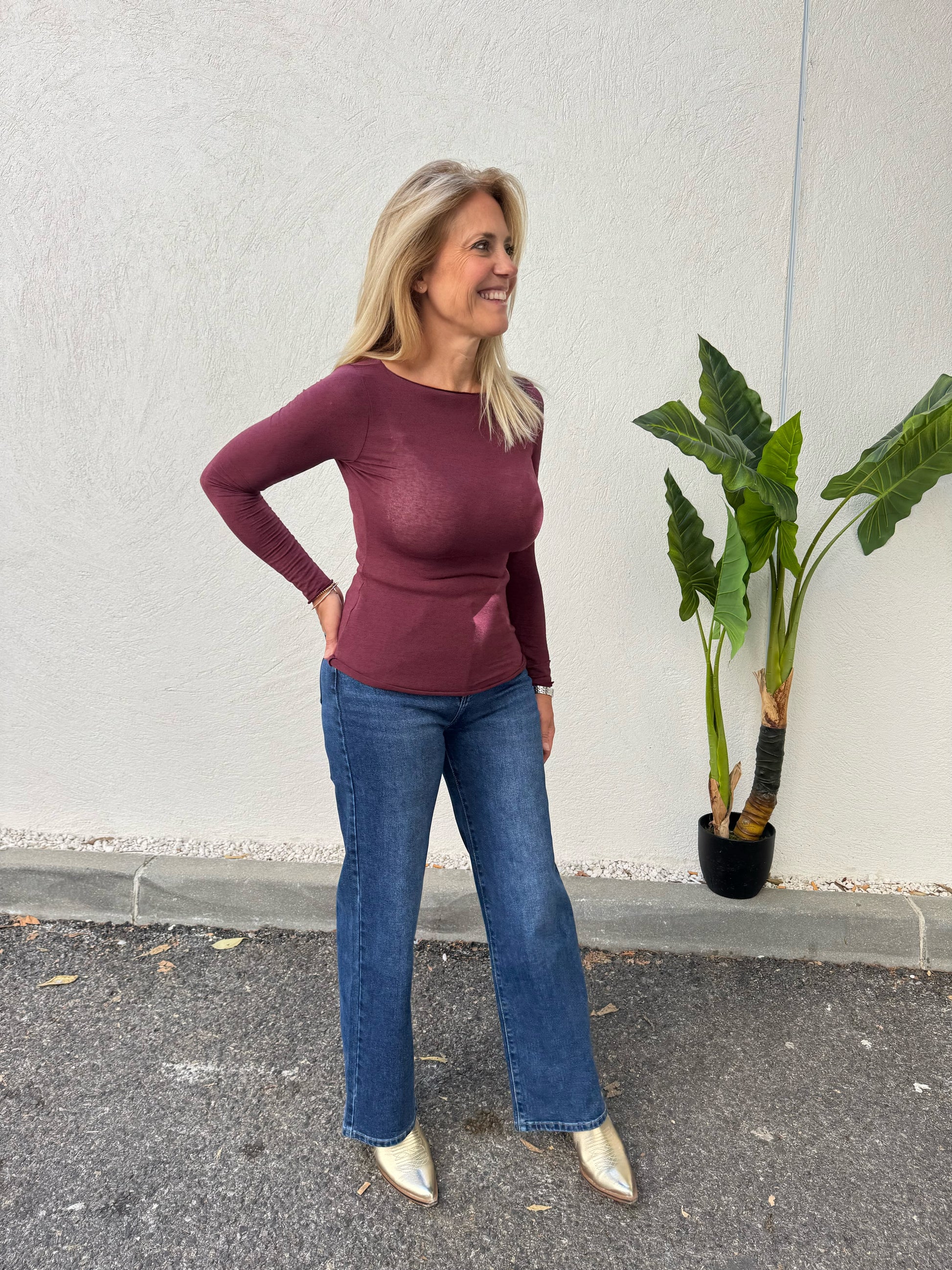 Top moulant en cachemire bordeaux