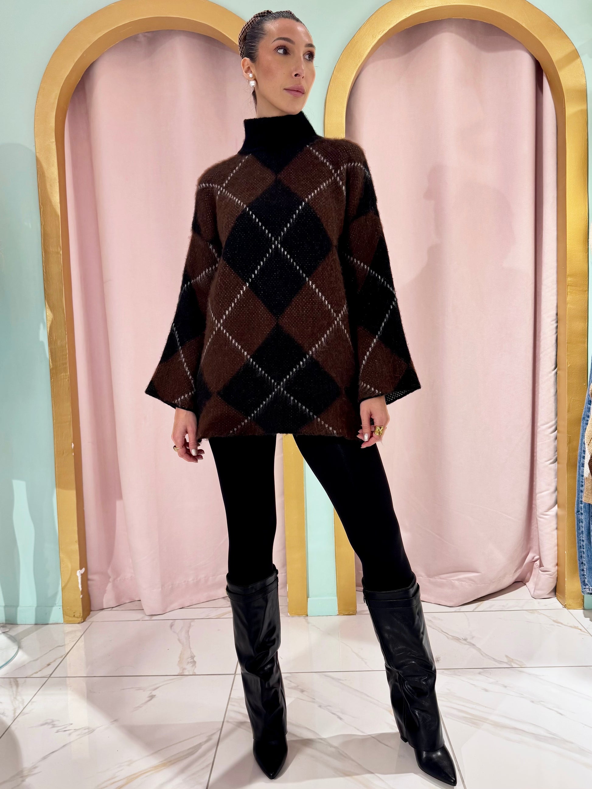 Son motif jacquard très tendance apporte du relief et un esprit hivernal chic. La maille contenant du mohair et du nylon est douce, chaude et confortable sans alourdir la silhouette. C’est la pièce effortless qui fait tout le look à elle seule.