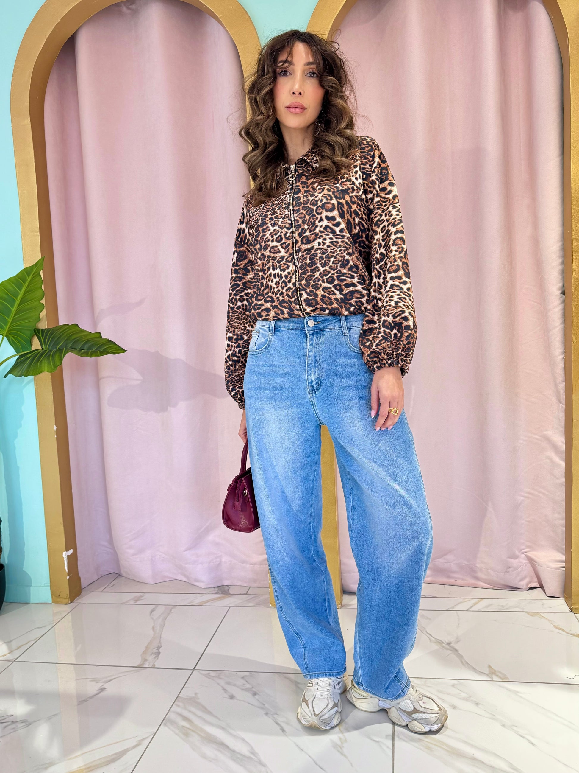 Cette veste esprit bomber est la pièce forte qui vient twister instantanément un look. Son imprimé léopard élégant et bien travaillé apporte du caractère sans en faire trop, parfait pour celles qui aiment les pièces originales mais faciles à porter.