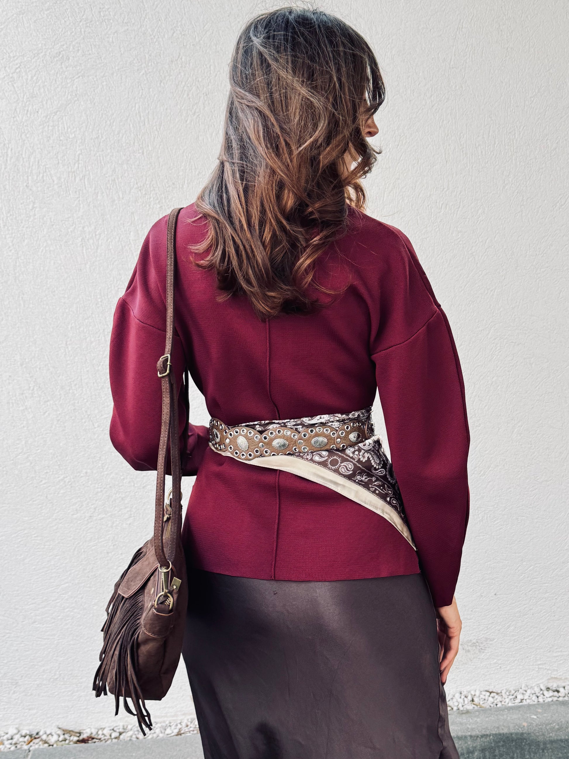 Veste-gilet en maille épaisse bordeaux – Manches ballon & crochets