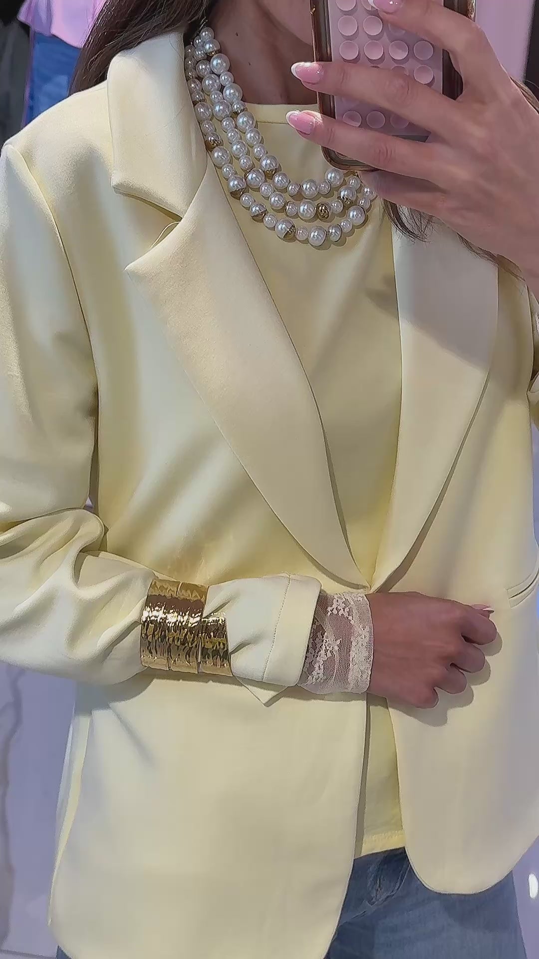Veste Tailleur Stretch – Streetwear chic - jaune pastel